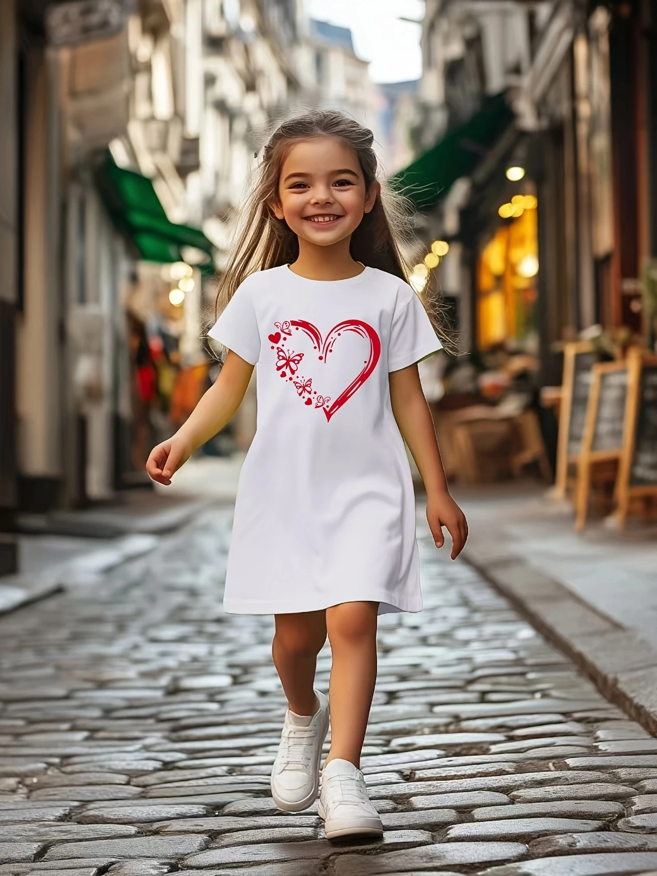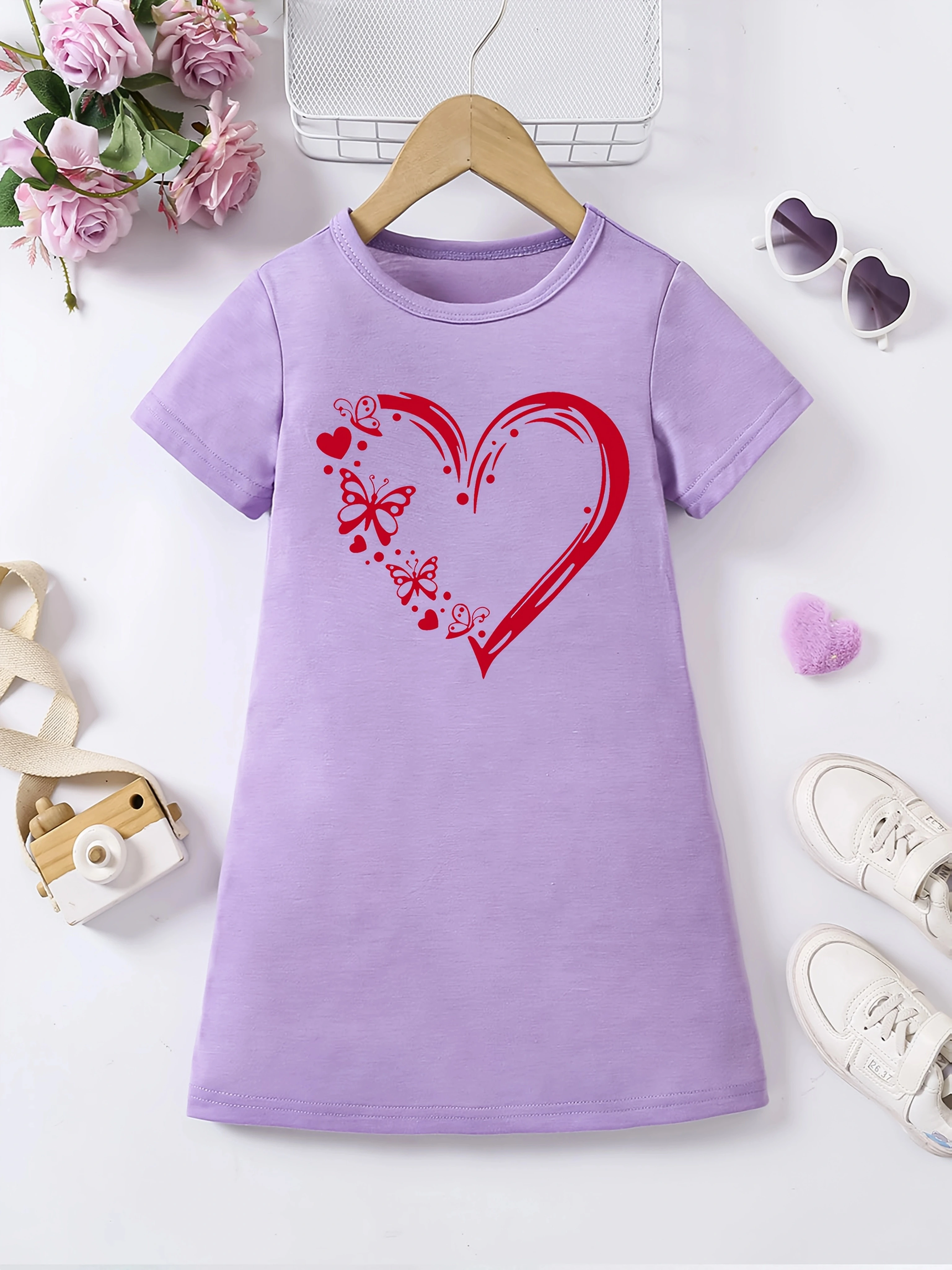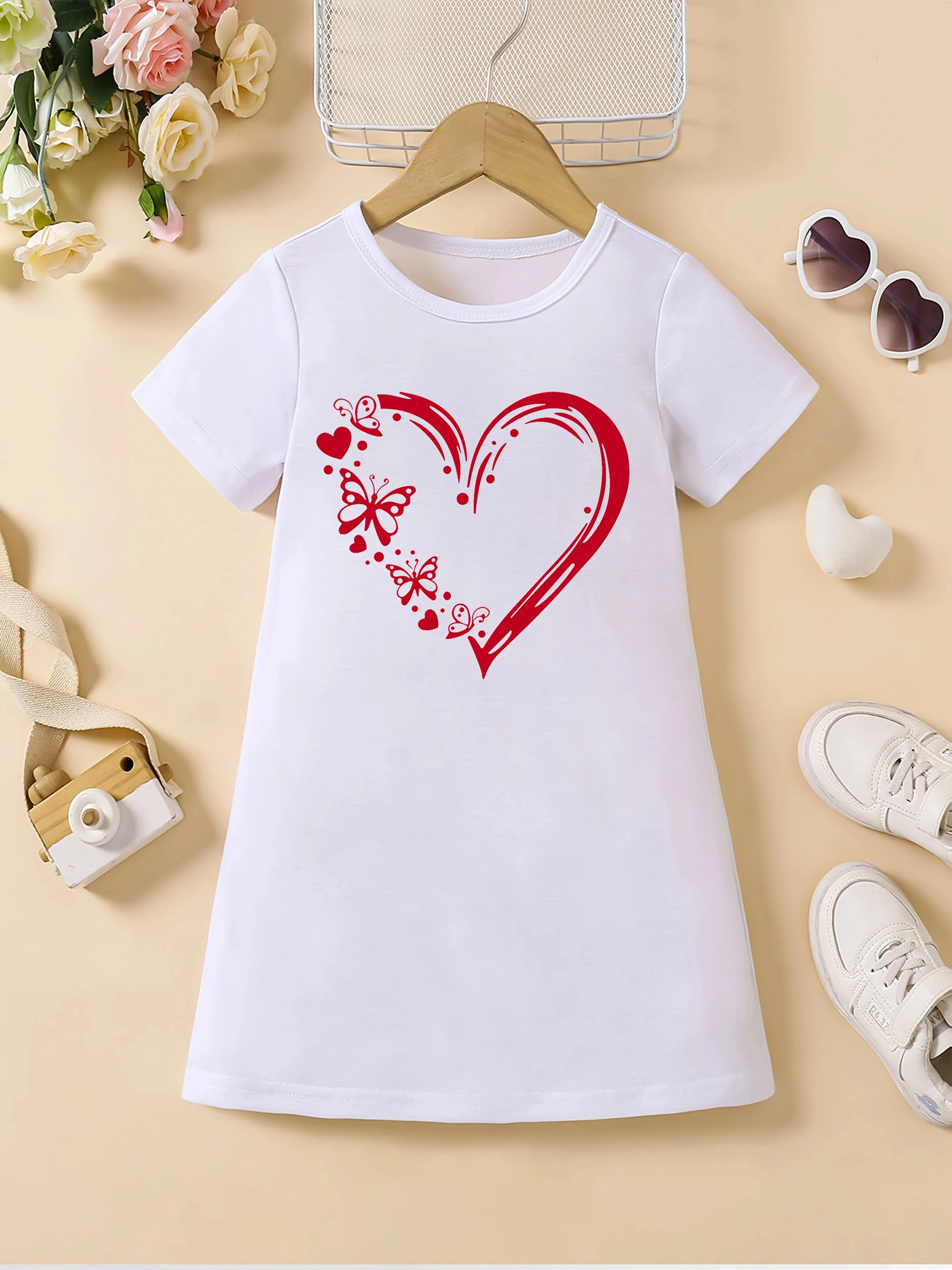 Girl's casual jumpsuit is soft and comfortable, stylish, simple and breathable A-line skirt | Love butterfly print dress